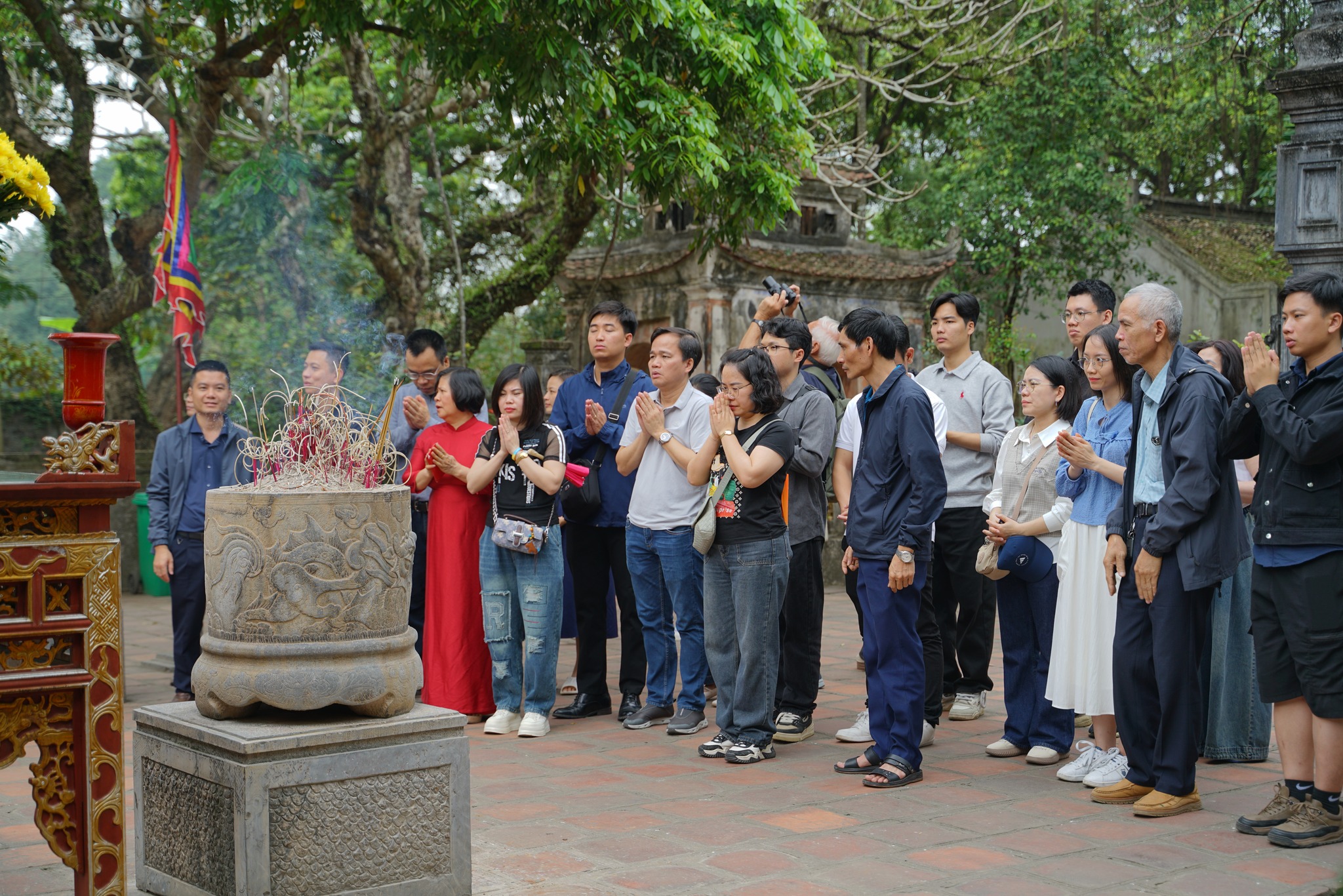 📍 Điểm dừng chân đầu tiên là Chùa Cây Thị, nơi cả đoàn dâng hương cầu chúc một năm mới bình an, thuận lợi và nhiều khởi sắc.